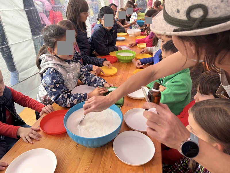 ore 17:00 - Laboratorio “Dal latte al tomino” in collaborazione con i pastori di Usseglio. A seguire merenda con pane, burro e zucchero per i bambini e giochi per tutti.